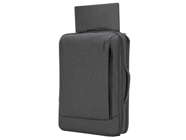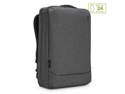 En väska med unik design som gör att du antingen kan bära den som en ryggsäck eller som en portfölj Tillverkad av återvunnet material inifrån och ut. Cypress Hero 15,6' konvertibel ryggsäck med EcoSmart är tillverkad i ett material som vävts av 24 återvunna plastvattenflaskor och är omsorgsfullt utformad för att skydda din arbetsutrustning samtidigt som den skyddar miljön. Denna miljövänliga väska är gjord för att passa bärbara datorer på 15,6'. Väskans unika design gör att du antingen kan bära den som en ryggsäck eller som en portfölj och axelremmarna kan stoppas undan när den inte används. Bland övriga funktioner finns ett särskilt vadderat fack att förvara din bärbara dator i, två huvudfack med fickor för att hålla dina mappar och vardagsprylar i ordning, ergonomiska axelremmar som gör din pendling bekvämare och en bagagerem för att fästa den konvertibla ryggsäcken på din rullväska. Tillverkad av 53% post-consumer återvunnen plast.